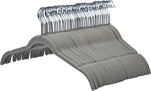 Amazon Basics Slim, Velvet, Non-Slip Shirt Clothes Hangers, Gray/Silver - Pack of 50