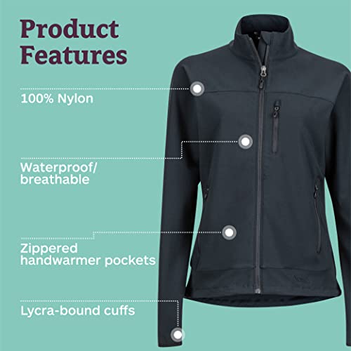 - Breathable, water-repellent women's softshell jacket, Marmot M3 softshells are ideal for hiking, climbing, and other aerobic activities in dry, mild climates, Zippered handwarmer pockets for added warmth; zippered chest pocket with headphone port for snag-free cable management, Elastic-bound cuffs and drawcord hem for secure fit while in motion, Softshell 90% polyester with double weave, 10% stretch elastane, 7.0 oz/yd