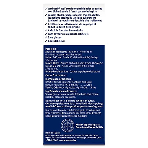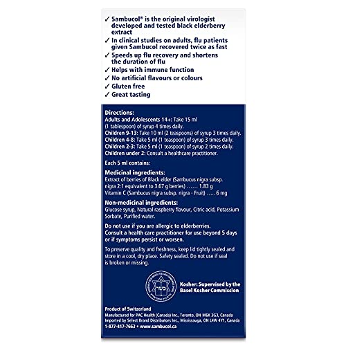 Sambucol Black Elderberry Anti-Viral Flu Care | Quickly Relieves Cold & Flu Symptoms | Immune Support & Antioxidant | Ideal for Families | Syrup, 230 mL, blue