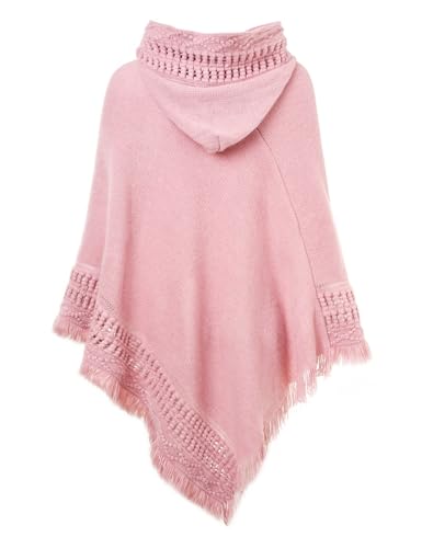 Ferand Ladies' Hooded Cape with Fringed Hem, Crochet Poncho Knitting Patterns for Women, One size, Pink