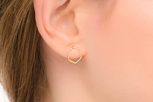 Hexagon Earrings Geometric Big Studs 14k Gold Filled Handmade