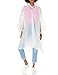- STAY DRY ON THE GO: Classic poncho style with a quick and easy pullover layout plus side snaps. Including a hooded design to cover your head and hair during pop up rain showers., LIGHTWEIGHT: Our EVA poncho provides rain protection when needed, perfect for sudden rainstorm without having to carry a bulky raincoat., STAY COOL: Loose fitting design allows air flow through the open bottom to help you keep cool during warm summer months., SOFT & DURABLE: Our EVA Poncho material is softer than a traditional PE plastic, keeping you comfortable while wearing. While providing the durability to wear whenever needed., COMPACT & REUSABLE: Once the rain ends, this poncho folds to fit in a compact 9 1/2 x 7-inch size. Includes a mesh bag for easy carrying and drying when not in use., ONE SIZE FITS MOST: Perfect for many heights and sizes, this poncho will fit both thin as well as big and tall body types.