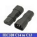 - Tekit quality IEC 320 C14 3 Pin Male to C13 Female Power Adapter, Rated up to 10A 250V.Make sure the equipment using this adapter will operate at the supplied voltage to avoid damage., Molded type, PVC material,Fully molded rugged construction, High Quality with CE test certificate., Package included: 2X C14 to C13 plug adapter