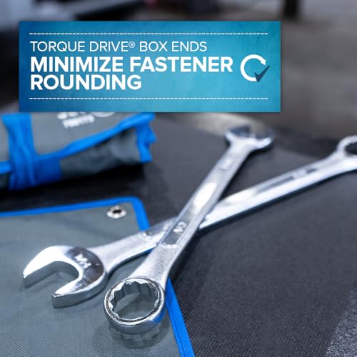 - COMBINATION WRENCH SET - JET's SAE Wrenches are made with professional quality S.A.E. 6140 Chrome Vanadium steel and raised panels for extra strength down the centre, EXTRA TORQUE - Innovative TORQUE DRIVE design box ends for increased torque while reducing fastener rounding, INCLUDES - Set includes 16 torque wrenches in sizes 1/4", 5/16", 3/8", 7/16", 1/2", 9/16", 5/8", 11/16", 3/4", 13/16", 7/8", 15/16", 1", 1-1/16", 1-1/8", 1-1/4", STORAGE & IDENTIFICATION - Includes industrial-strength terylene tool pouch and hard stamp on wrench head for easy size identification, MEETS STANDARDS - ANSI compliant; Designed for any professional plumbing, repair, and assembly jobs