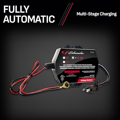 Schumacher Electric Fully Automatic 1.5A Battery Charger and Maintainer, 3-in-1 Solution for 6V/12V Batteries, SC1300, for Motorcycle, Power Sport, Car, and Marine Batteries