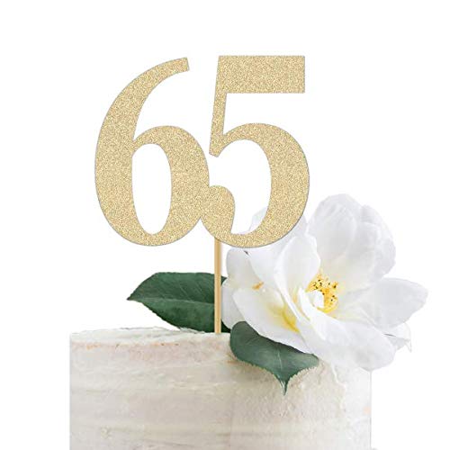 Gold Glitter 65 Cake Topper, 65th Anniversary, sixty fifth Birthday, sixty five