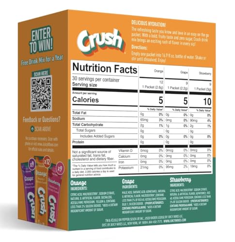 Crush Singles Berry Punch. Grape, Orange to Go Sugar Free Drink Mix Variety Pack 2.64 oz 30 Sticks (1 Unit)