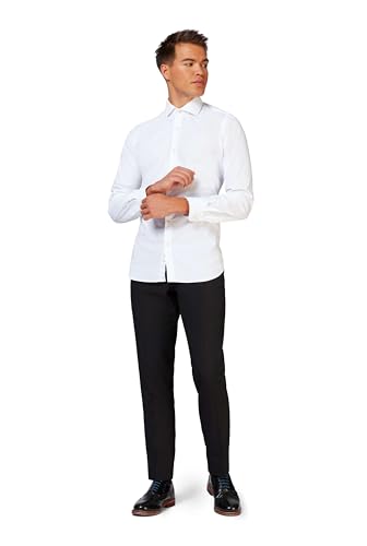 - WHITE KNIGHT: Found the perfect suit, but don't have the right white button up shirt to wear with it? Our white dress shirt for men is comfortable and stylish. And It's designed to wear with a suit, so it's long enough to tuck and stay in your pants; pretty important, since you're probably going to dance in it. Actually, your wardrobe isn't complete without this piece of clothing, because this basic white shirt for men can be combined with any suit., CHECK YOUR SIZE: Our awesome shirts are outstanding in any situation, so help yourself out and make sure to measure yourself! You don't want to ruin the party with a small shirt, do you? Check the measure guide within the images and make sure that you receive a size that suits your needs! The shirt fitting is Slim Fit, so if you are doubting between two sizes, we advise to pick the larger one!, PERFECT FOR ANY OCCASION: Stylish, high-quality button-up shirt. Perfect under a stylish suit and great for year-round occasions such as a bachelor party, a wedding, a festival, a sporting event or any type of party where you want to stand out., INCLUDED IN YOUR OUTFIT: All shirts have button closure and a modern tailored cut for a stylish fit. The OppoSuits men's shirts consist out of 60% cotton 40% polyester & are Machine Washable. The package is including 1 button-up shirt., ABOUT OPPOSUITS: We want to provide people with quality, yet affordable suits. Our suits represent those who don't take themselves too seriously but still want to maintain a sense of style. OppoSuits was founded in 2012 and started as an idea between friends that has grown to an international phenomenon. We have you covered for any event with their wide selection of Suits, Shirts, Dress shirts, Blazers, Tuxedos, Costumes, Onesies and Summer Sets.