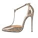 SAMMITOP Women's Pointed Toe High Heel Pumps T-Strap Dress Shoes 12cm Stilettos Heels, Glitter Gold, 12