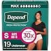 - DryShield Technology provides long lasting dryness and comfortable protection for postpartum bleeding or bladder leaks, Disposable Maximum Absorbency Incontinence Underwear for women traps and locks in wetness and odour, Improved SureFit waistband for added protection; cloth-like soft material for comfort that feels like underwear, Form-fitting LYCRA strands offer a comfortable, discreet fit, flexible to move with you unlike bulky adult diapers, This package includes a total of 19 female incontinence underwear, Depend adult incontinence products always ship in a discreet corrugated box, Packaging may vary from image shown