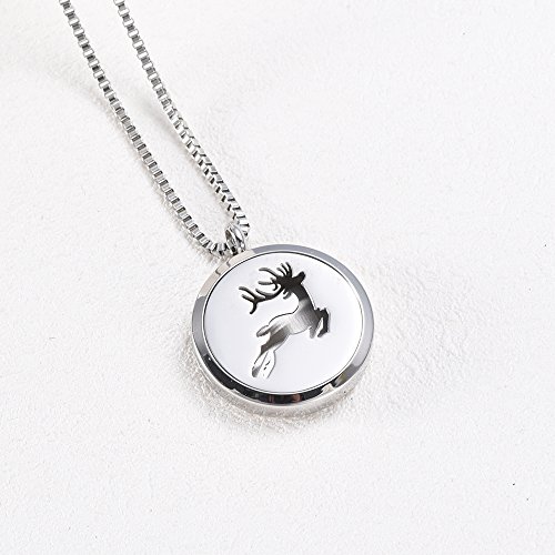 Aromatherapy Essential Oil Diffuser Necklace Pendant Locket Jewelry/20'' Adjustable Box Chain Stainless Steel Perfume Necklace for Women (004(Reindeer))