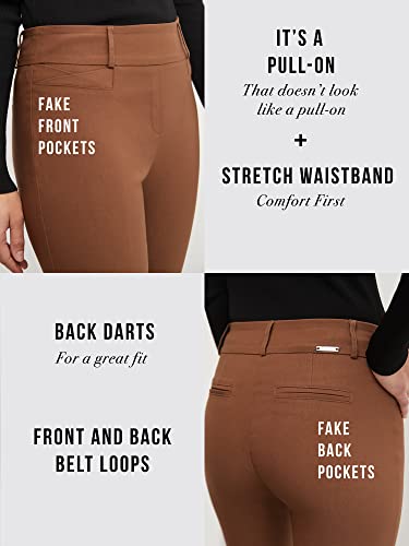 - Made in Cambodia. Please refer to our size chart before ordering to ensure the best fit! Machine wash in cold water - always hang to dry to avoid shrinkage., MODERN LEG : Our barely bootcut pant has a slightly narrower leg than our regular bootcut pant for an updated take on a classic slimming shape. Mid-rise, Fitted through the hip and thigh., DETAILS: Front and back belt loops. Faux front and back pockets, pressed leg crease for a touch of chic. PANT INSEAM: Regular 32" / Petite 29" / Tall 35". Model is 5'9" wearing size 4., CLASSIC COMFORT: Pull-on style, (No zipper, no closure). Featuring our wide contour elasticized waistband that moves with you, and smooths out any imperfections., STRETCH WOVEN FABRIC: Looks chic, crisp, feels like a dream. Solid Colors: 74% Rayon 22% Nylon 4% Spandex. Melange Colors: 48% Polyester 27% Rayon 21%Nylon 4% Spandex. *Contents May Vary.