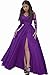 LastBridal Women Sexy V Neck Lace Appliques Long Sleeves Prom Dresses Formal High Slit Evening Gowns LB0076 US 24W Purple