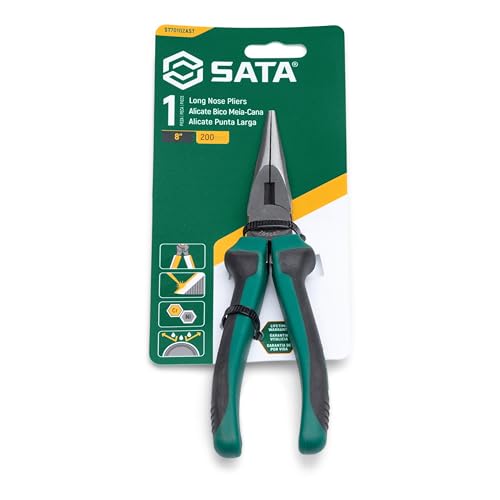 SATA 8-Inch Long-Nose Cutting and Gripping Pliers with Nickel-Chrome Steel Body and Green Anti-Slip Handles - ST70102AST