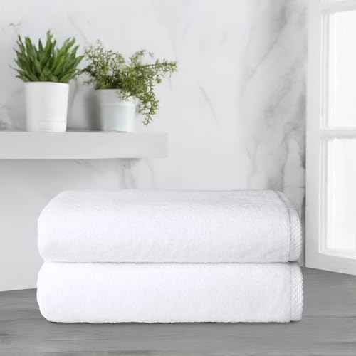Amazon basics 2 piece Lightweight quick-dry oversize bath towel, 100% cotton, white, 62" x 30"