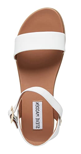 Steve Madden Women's Dina Flat Sandal, White Leather, 7.5