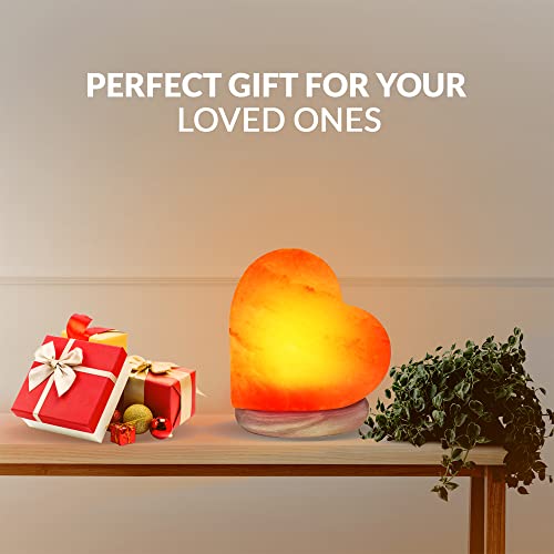 Himalayan Glow 944AC USB Salt Lamp Night Light, Himalayan Romantic Heart Crystal Table Neem Wood Base/LED Bulbs, 4 LBS