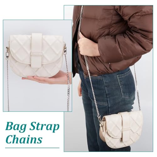 - ✅Total length (2 buckles included) about 160cm (63 inches). Chain width 7.5mm (0.29 inch). Chain thickness 2.5mm (0.1 inch)., ✅Metal Buckles: buckle length: about 34mm (1.34 inches). Snaps fit bag rings up to 6mm (0.24 inch) in thickness or smaller. Buckle with 360 degree rotation part ensure the sturdy installation., ✅Polished and multi-layer electroplating, high color fastness and glossy gloss. Toughness, good ductility, beauty and durability., ✅Versatile and removable, use it as a single cross body strap or double it up as a shoulder strap., ✅Removable Chain: classic replacement strap or handle for DIY bag, such as clutch, wallet, shoulder bag, cross-body bag, handbags, purses, cross-body bags, tote bag, etc.