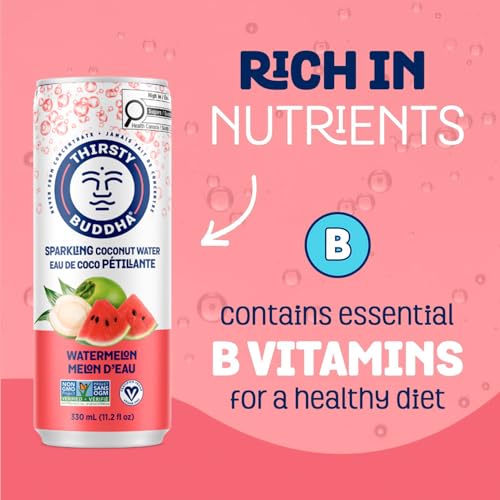 - Naturally Sparkling Hydration: Thirsty Buddha Sparkling Coconut Water is infused with nature’s electrolytes; potassium, calcium, and magnesium, delivering a fizzy, refreshing boost wherever you go; Pure hydration with a sparkling twist, Zero Added Sugar, All Refreshment: Craving a fizzy coconut water without the sugar? Thirsty Buddha’s sparkling coconut water has zero added sugar, giving you all the hydration and none of the extra calories, with a delightful natural fruit flavour, Sourced for Superior Taste: We source high-quality coconuts from family farms in Southeast Asia for our Thirsty Buddha coconut waters; Naturally infused with a touch of fruit flavour for a deliciously clean and fizzy taste, Versatile & Refreshing: Whether you enjoy it straight from the bottle, pour it into a glass of ice, or mix it into mocktails, or cocktails, our sparkling coconut water is a great hydrating and effervescent refreshment for any occasion, Nutrient-Rich & Refreshing: With B-vitamins, electrolytes, and the added effervescence, Thirsty Buddha Sparkling Coconut Water is more than just a drink, it’s a nutrient-packed, naturally flavored refresher that helps fuel your healthy lifestyle with every bubbly sip