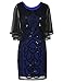 kayamiya Women's Retro 1920s Beaded Sequined Floral Fringe Gatsby Flapper Dress, Black Blue, Medium