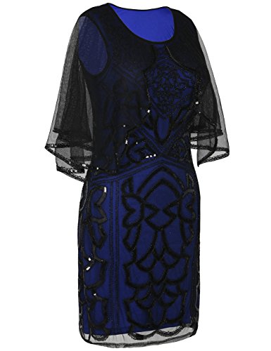 - Vintage 1920s Style Gatsby Costume Dress With Cape, Crew neck,side concealed zipper,about knee lengh, Deco with high quality sequins and beads, Roaring 20s Flapper Gatsby Dress , perfect for Evening Party,Wedding Cocktail, Homecoming, Prom or any formal occasion, Handwash only