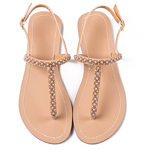 Women's Summer Casual Beach Shining Shoes Bohemia Pearl Sandals Lady T-Strap Flip Flops Slippers