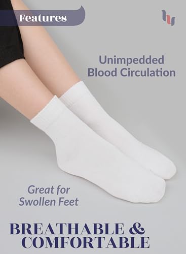 HUGH UGOLI Women Diabetic Ankle Socks, Super Soft & Thin Bamboo Socks, Wide & Loose, Non-Binding Top & Seamless Toe, 4 Pairs, White, Shoe Size: 6-9