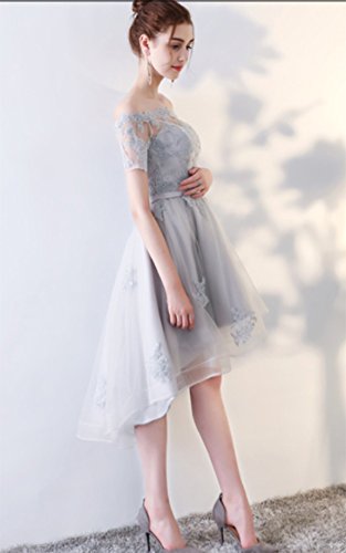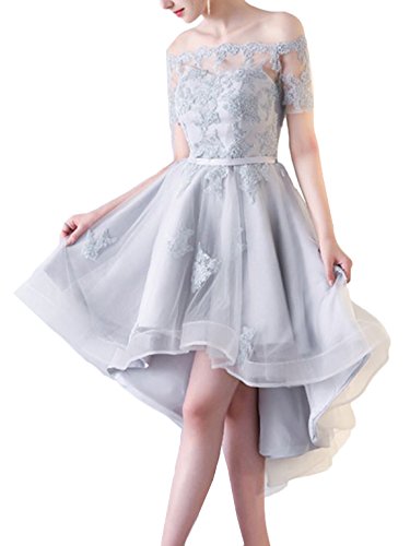 - A-Line Off-the-Shoulder Short Sleeves High Low Cocktail Prom Homecoming Party Gowns, Lace Appliques & Tulle Material,Built-in-bra,Lace-up Closure, Occasions: Prom dress,Birthday, Homecoming dress, Graduation dress, Evening, Wedding party,Bridesmaid, Dancing, Dating, Cocktail, Clubwear, Formal Party dress and other Special Occasions., Choosing the perfect Standard size based on our Size Chart posted online,not Amazon's.Also, custom size is available;please choosing custom size and after ordering, your detailed measurements will help to custom you a perfect dress., Shipping Ways. 1. The Expedited Express will take 2-4 business days for delivery. 2. The Standard Way Shipment will take 14-28 business days for delivery.