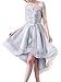 Scarisee Women's Off-Shoulder High Low Prom Dresses Lace Appliques Short Sleeves Homecoming Cocktail Party Gowns Silver Custom