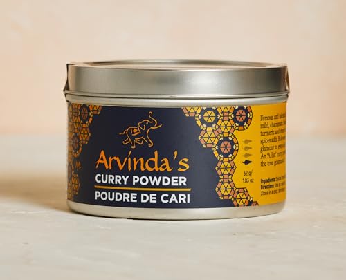 Arvinda’s Curry Powder 52g, Freshly Roasted Canadian Made Spice Blend with Aromatic Turmeric, Cardamom & Fenugreek, Mild, Flavourful Seasoning for Everyday Cooking, Gluten-Free, Vegan, Kosher (52 g (Pack of 1))