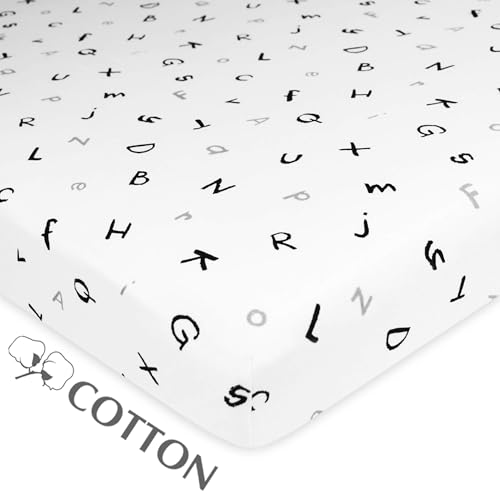 American Baby Company 100% Natural Cotton Fitted Pack and Play Sheet 39" x 27" - Soft & Breathable Pack N Play Sheet for Playpen, Playard & Mini Crib Mattress, Alphabet, for Boys & Girls