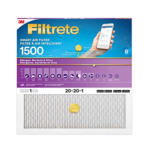 - MAKE YOUR HOME YOUR SANCTUARY: Smart 20x20x1 Air Filter Filtrete MPR 1500 Allergen, Bacteria and Virus not only helps capture unwanted particles from your household air, but also uses Bluetooth technology to track filter life, DIFFERENT FROM NOMINAL SIZE: Slightly different from the nominal size, this air filter’s exact dimensions are 19.69 x 19.69 x 0.78, MANY PARTICLES: With a 1500 MPR and MERV 12 rating, your Filtrete Filter will help capture many microparticles, including pet dander, smoke, bacteria and viruses, as well as large particles like lint and household dust, to help make your air cleaner, EASY SETUP: Simply download the Filtrete Smart App, pair the smart air filter, and get notifications to your smartphone, including alerts to change your air filters, BLUETOOTH-ENABLED SENSOR: Sensor tracks AC filter life based on data from your home’s HVAC system, so you can track the life of your filter based on airflow and usage, ADDITIONAL APP FEATURES: Filtrete Smart App provides reminders, allows you to shop for multiple air filter types and sizes, and lets you view the outdoor air quality of different locations
