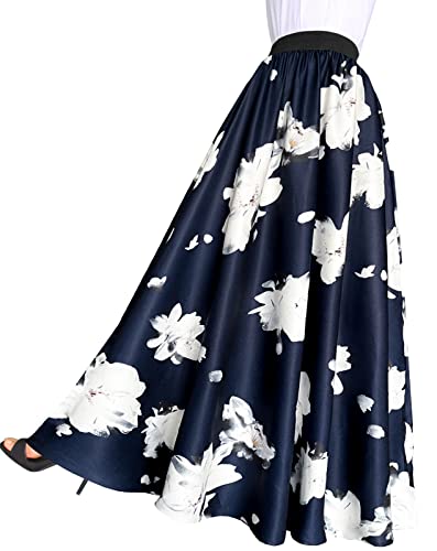Afibi Women Chiffon Mopping Floor Length Big Hem Solid Beach High-Waist Maxi Skirt (Small, Color 2)