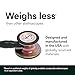 - Diagnose and make decisions with confidence and hear subtle changes in patient status, Useful in critical care and challenging environments such as the ED, ICU, Cardiac ICU, step-down unit and other dynamic locations, More than twice as loud* as the next leading stethoscope. *Based on tests against globally-available comparable stethoscopes in an equivalent class using recorded heart sounds with diaphragm., Allows you to more reliably and consistently hear heart sounds at lower frequencies (below 120Hz*) like Korotkoff sounds, Mitral Stenosis and S3 and S4 Gallops when compared to other leading stethoscopes. *Based on tests against globally-available comparable stethoscopes in an equivalent class using recorded heart sounds with diaphragm., Weighs less** than other stethoscopes. ** Based on published weights of globally-available comparable stethoscopes in an equivalent class., Ergonomic and high profile construction; 40% larger chestpiece and 60% deeper bell than the 3M Littmann Classic III Stethoscope, Tunable, dual-sided stainless steel chestpiece with open or closed bell; Non-chill bell sleeve for greater patient comfort, Designed for use with adult and pediatric patients, Soft-sealing ear-tips provide optimal comfort and excellent sound occlusion, Designed and manufactured in the USA with globally-sourced materials; 7-year warranty