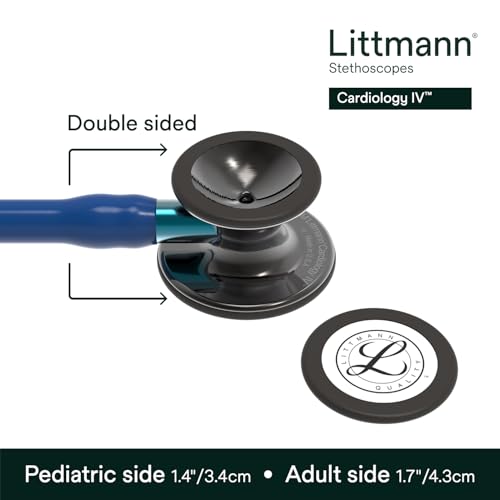 3M Littmann Cardiology IV Diagnostic Stethoscope, 6202, More Than 2X as Loud*, Weighs Less**, Stainless Steel High Polish Smoke-Finish Chestpiece, 69 cm (27") Navy Tube, Blue Stem, Black Headset
