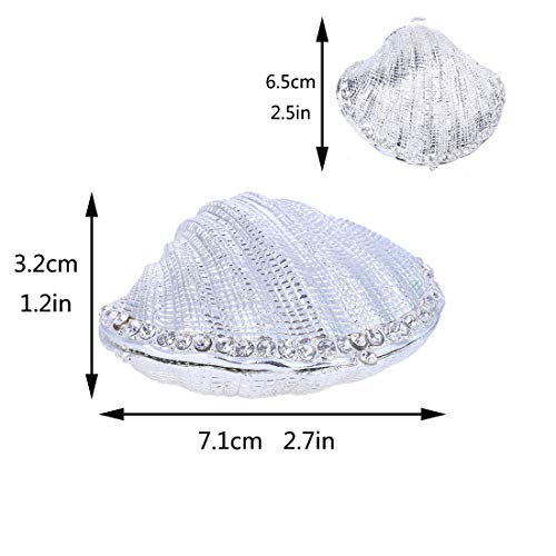 - Animal shape jewelry boxt,vivid and realistic,made by zinc metal alloy and bejeweled with sparkling crystals,looks gorgeous and festive., Messure 2.7*2.5*1.2in.Great home decor ornament for your dresser, book case,cabinet,vanity table,mirror tray in your living room,bathroom,bedroom., Ocean theme jewelry trinket box hinged with small storage space to hold your earrings, rings, necklace or other little trinkets or treasures., Made of metal and crystal,packed with gift box.Makes a suitable and meaningful gift choice for any occasion.Like Mother's day, Christmas, Valentine's Day, an Anniversary. A great way to express your love to someone important in your life, If you are not completely satisfied with our Seashell ring holder or defective item received,please contact with us,we will try our best to solve it for you.
