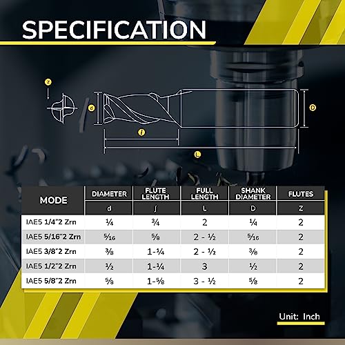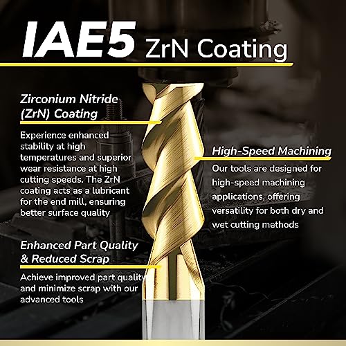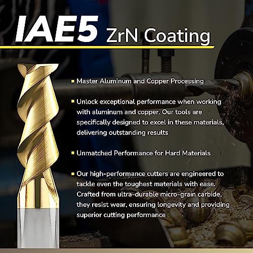 SPEED TIGER Carbide Square Nose End Mill with ZrN Coating - 2 Flute - IAE5-1/2 2T-ZrN (5 Pieces, 1/2")- for Milling Aluminum Applications – Mill Bits Sets for DIYers & Professionals