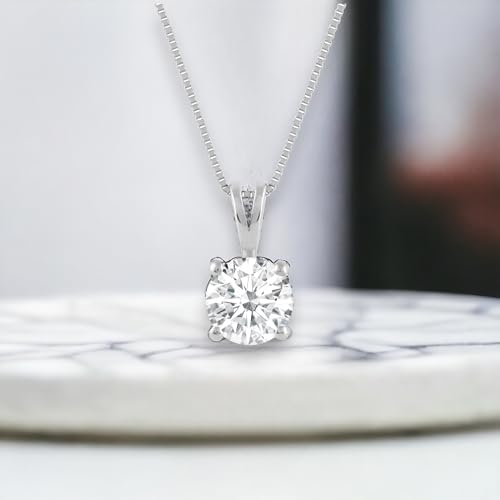 - 💎 HIGH QUALITY - She will adore the minimalist design of this pendant necklace. Shop confidently knowing that Everyday Elegance specializes in quality solid gold jewelry with sparkling top-grade AAAAA Cubic Zirconia stones. This classic necklace is the kind that everyone should have in their jewelry wardrobe and is of craftsmanship that you expect in the finest jewelry., 💎 CUBIC ZIRCONIA - This head-turning pendant features a gorgeous Round cut Cubic Zirconia (CZ) measuring 6.5 mm wide and 1.0 Carat Total Weight. Cubic Zirconia are the ideal conflict-free alternative to diamonds with similar cut, sparkle, and fire, but at a fraction of the cost. A CZ is a synthesized (lab created) crystalline material that is colorless, hard, and flawless. All of our stones are graded AAAAA (the highest grade available!)., 💎 16-INCH BOX LINK CHAIN - "Choker Length" wraps loosely around the base of the neck like a collar. On a petite woman it hits the collarbone while for plus size women it might feel more like a choker. The box link chain is known for its link strength and beautiful sheen encircling the neck. The .60 mm fine gauge chain appears delicate, but is amazingly sturdy enough for daily wear. Chain length is measured as total circumference, including the springring clasp., 💎 SOLID 14 KARAT GOLD - Rest assured that this pendant and chain are real gold, 14K White Gold with no other metals mixed. Gold fineness is 585 per 14K gold standards. We never gold plate or use gold-filled metals in any of our jewelry. Our commitment to consistent gold quality ensures those with metal allergies that our solid gold jewelry is hypoallergenic., 💎 READY FOR GIFT GIVING - This quintessential gift comes in a beautiful two-tone "Everyday Elegance Jewelry" outer box with a quality black velvet presentation box. Surprise someone special for Valentine’s Day, Anniversary, Mother’s Day, Birthday, Christmas, or “just because”. Everyday Elegance jewelry is the perfect gift for a loved one or will make a great addition to your gold jewelry collection!