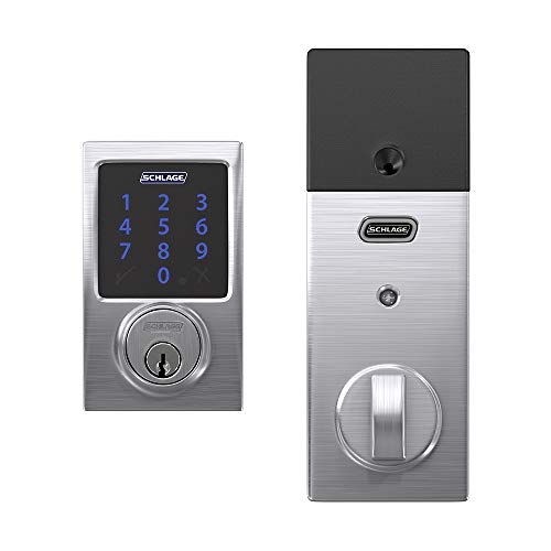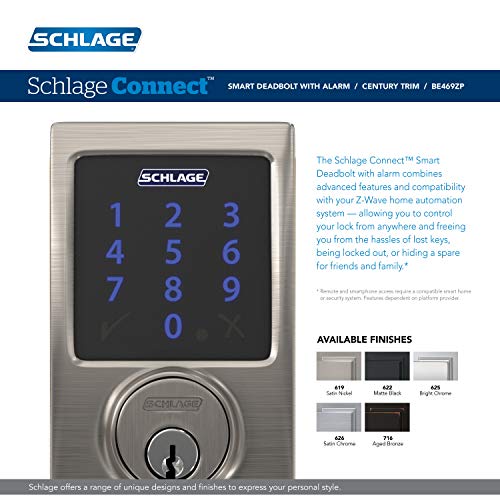Schlage BE469ZP CEN 626 Connect Smart Deadbolt with Alarm with Century Trim in Satin Chrome, Z-Wave Plus Enabled