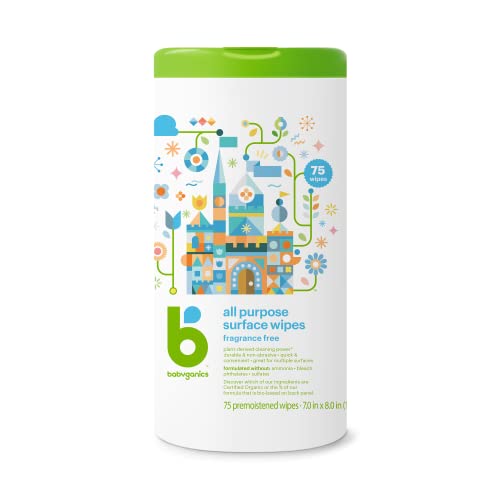 Babyganics Unscented & All-Purpose Wipes, Surface Cleaning Wipes to Cover Baby's Tracks and Prepare Their Next Adventure, Fragrance and Ammonia Free, 75 Wipes, Packaging May Vary