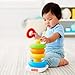 - Classic infant stacking toy with 5 colorful rings to grasp, shake, and stack, Top ring has shiny surface with rattle beads inside, Roly-poly rocker base for wibbly-wobbly, bat-at play, Helps develop fine motor skills and gross motor skills as baby grasps, shakes, and stacks the rings, Great toy for babies and toddlers ages 6 months and older, Smilestones: Bringing a smile to milestones! This toy helps foster Crawling by giving your baby colorful round targets to move toward