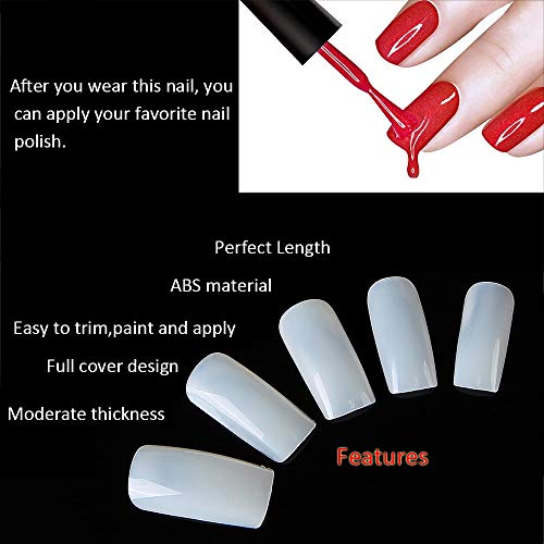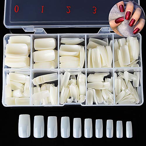 JoofEric 500pcs Squoval Nails Tips Full Cover Acrylic French Artificial Square False Nails 10 Sizes for Nail Art (Full-Natural)