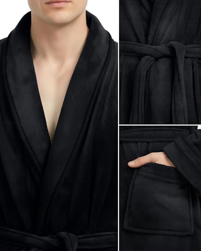 NY Threads Luxurious Mens Shawl Collar Fleece Bathrobe Spa Robe, Large/X-Large, Black