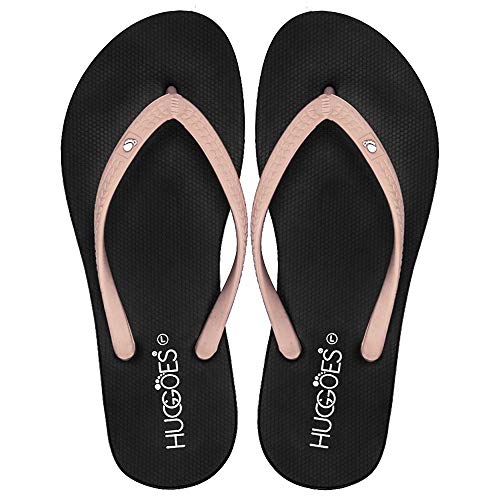 HUGGOES - Ultra Soft Comfortable Natural Rubber Summer Beach Flip Flops For Women, Black - Beige, 4-5