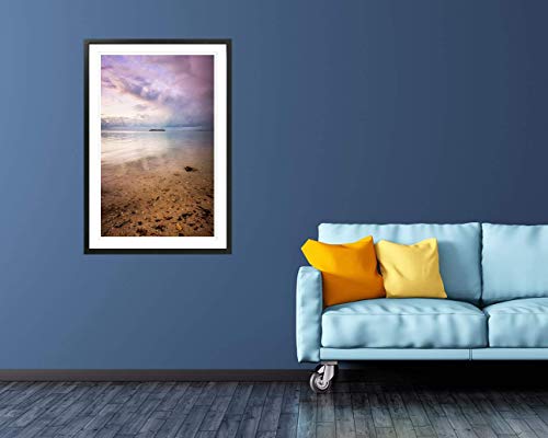 Ocean vertical photography print. Purple framed tall wall art.