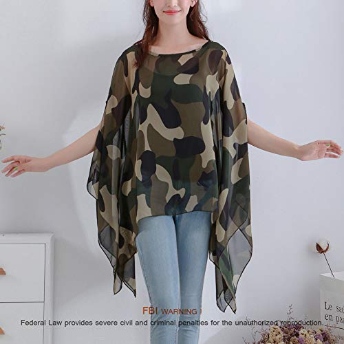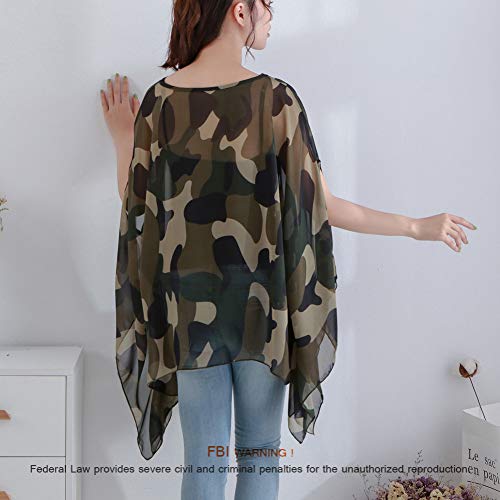 Max Hsuan Women's Loose Solid Sheer Chiffon Caftan Poncho Batwing Tunic Top Blouse Summer Oversized Shirts, Camo, One Size Plus