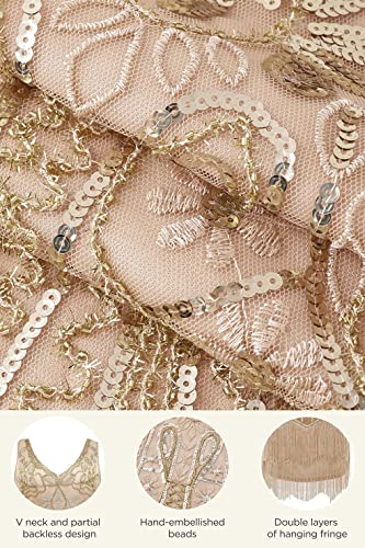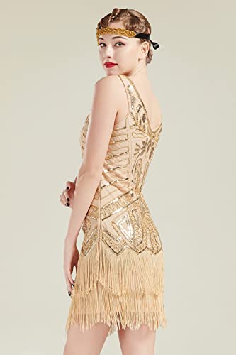 BABEYOND Women's Flapper Dresses 1920s V Neck Beaded Fringed Great Gatsby Dress Champagne Gold