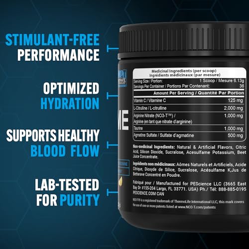 PEScience High Volume Stim-Free Pre-Workout Pump Powder, Caffeine-Free with L-Citrulline & L-Arginine Nitrate, Non-Stim Preworkout for Men and Women - Raspberry Lemonade, 36 Scoops