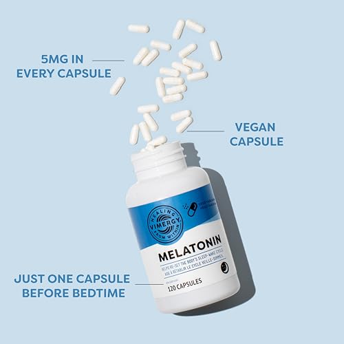 - PROVIDES 5MG PER SERVING. Vimergy melatonin in capsule form delivers 5mg per serving, unlike other brands that offer only 1-3mg per serving. Our drug-free, non-habit-forming melatonin supports your healthy sleep cycle with no alcohol or additives, and it comes in a convenient mini-capsule that’s easy to swallow. Our superior formula contains only 3 ingredients: melatonin, cellulose, and water., HELPS PROMOTE SLEEP. If you struggle to fall asleep or stay asleep at night, Vimergy Melatonin Capsules can help. For those with occasional sleeplessness or altered sleep schedules, Melatonin, a hormone produced by the pineal gland in the brain that plays a crucial role in regulating the body's circadian rhythm) may reduce the time it takes to fall asleep, while also improving overall sleep quality and duration., CONVENIENT CAPSULES. Take Vimergy melatonin capsules with you when you travel, so you can get relief from occasional sleeplessness no matter where you are., PEACE OF MIND CLEAN. Vimergy is triple third party verified, for your peace of mind. Our melatonin supplement comes in a clean capsule format, formulated with no gelling agents, gluten, corn, soy, alcohol, or unnecessary colors or fillers. We offer a clean vegan supplement that’s kosher, gluten-free, and paleo-friendly., GOOD SLEEP IS IMPORTANT. Sleep is not a luxury for humans; it’s critical to our good health. Unfortunately, occasional sleeplessness impacts about 33% of all adults. Sleep helps your body repair itself, and it contributes to the health of your immune system, cognitive function, mood, and metabolic system. The National Sleep Foundation recommends focusing on better sleep health to aid immune function and response. Get the good sleep you need, with a nightly serving of Vimergy melatonin.