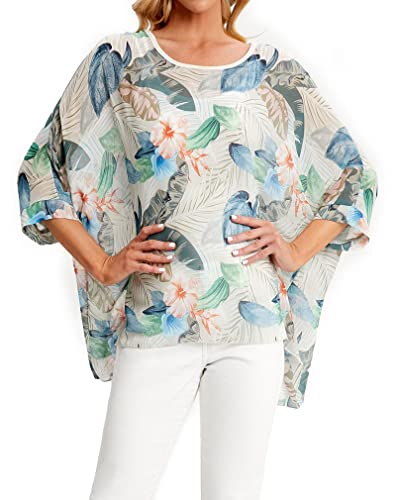 Rokou Women's Floral Blouse Loose Batwing Sleeve Beach Chiffon Poncho Sheer Tunic Tops, Color38, X-Large